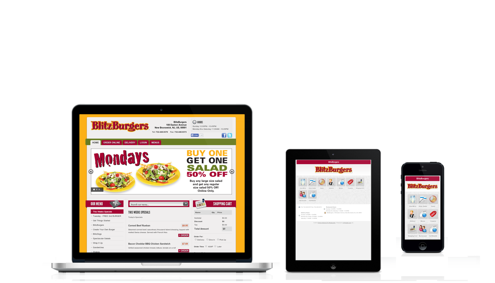 Mobile / Tablet friendly website with ordering capability. Your customers can order/see your menu either through their browser or use their mobile phones.